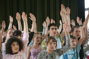 Donnernder Applaus nach der rund einstündigen Uraufführung für eine Leistung, die pädagogisch-ästhetische Maßstäbe setzte: Der Lohn für monatelange intensive Probenarbeiten.